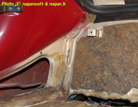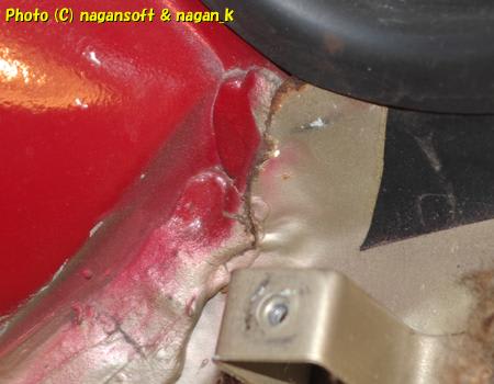 水進入の元を絶たない限り、この部位に水が来るはずなのでサビ穴を塞がないでおこうと思っていたのだけど….