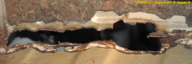 そして、この水の通り道の終点が、今回のサビ大穴箇所になります。