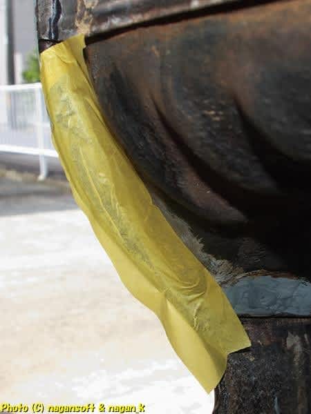 そのマスキングテープを剥がして、鉄板に貼りつけて、鉄板を切り出します。
