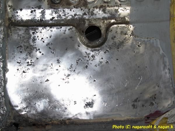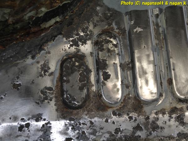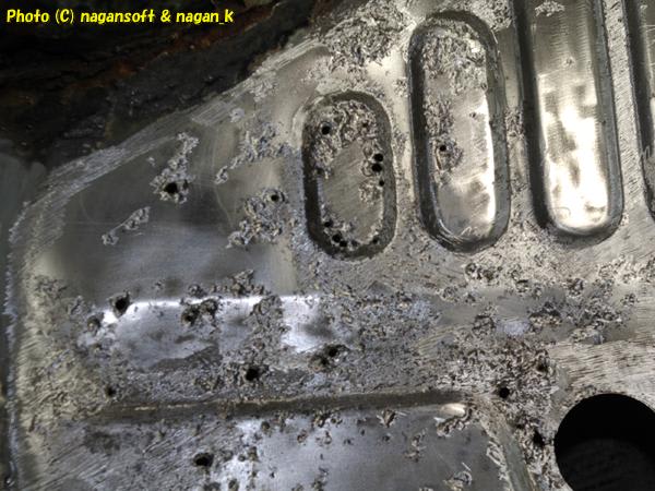 水抜き穴周辺は、ザクザクと鉄が崩壊するかと思っていたのですが、思いのほか原型をとどめてくれています。