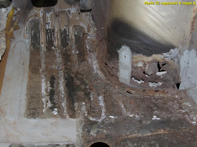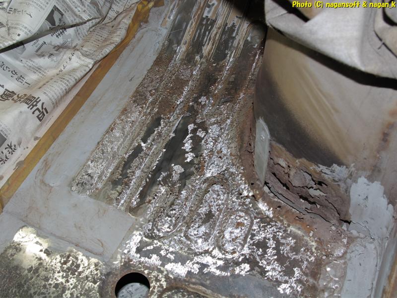 腐食して鉄部分が薄くなっているので一気に削れて床がなくなってしまいそうです。