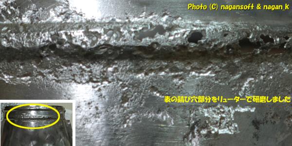 筒の内側もリューターで頑張ってサビを落としましたよ。
