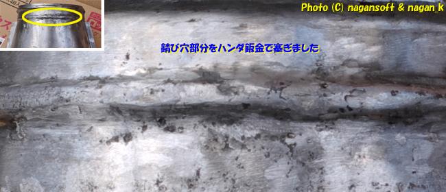 ついでに、ところどころサビで虫食いされているところもハンダ鈑金します。