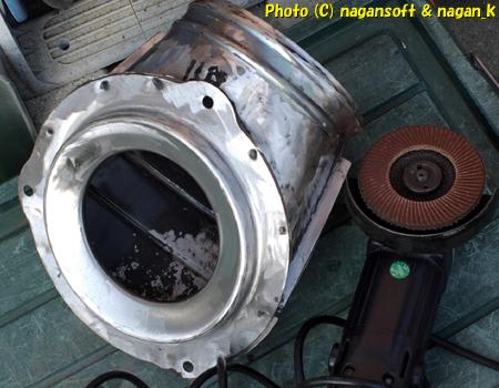 ということで、ハンドグラインダーを当てることができるところを、グラインダーで軽くグイーンです。