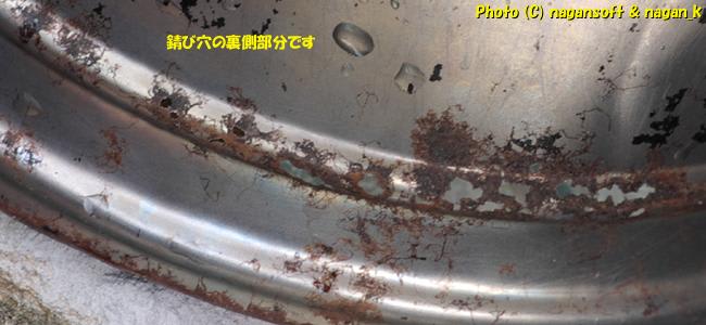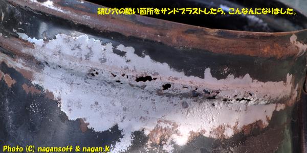 錆び穴の酷いところだけサンドブラストしてます。ブラスト部分の拡大写真です。