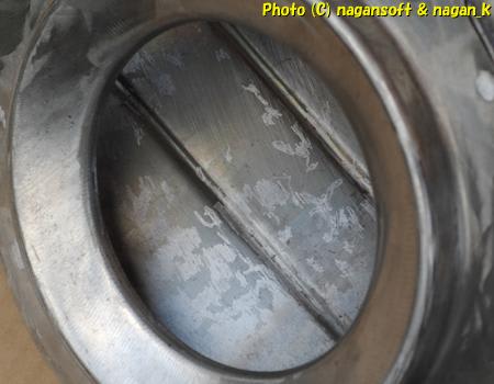 筒の内側は、ボロボロにサビているわけではないが、なんか網目上にところどころにサビが発生しているのが見える。