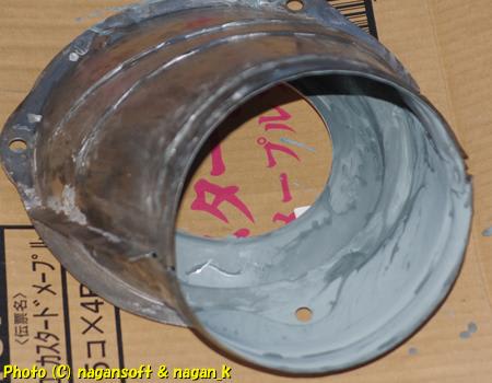 鈑金作業中の写真はありません。だって写真で見せるような作業でもないですし、ひたすらハンダ鏝を握りしめるだけで、ハンダを盛り上げたところを、ハンドグラインダー、ベルトサンダー、ハンドリューター、紙やすりで成形するだけです。