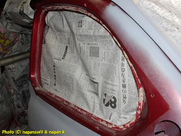 クオーターガラスがはまっていた部分、つまり、クオーターガラスはめ合い部のサビ処置を開始です。