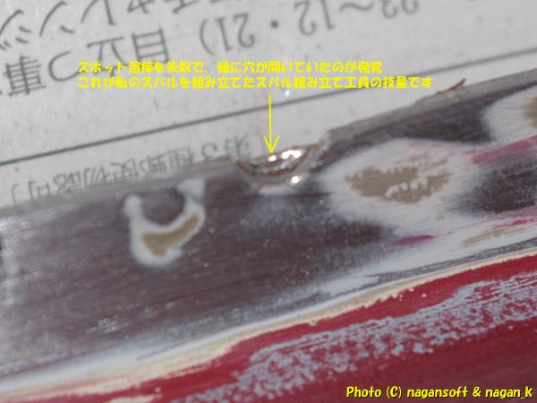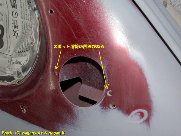 左側から攻略していきます。(私のスバルは、なぜか左側の組立とスポット溶接の程度がいいのです。程度のよい方から試行錯誤していこうということです)