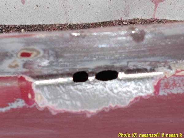 サビ穴部分もリューターでほじくったら、そこそこの穴が開きました。