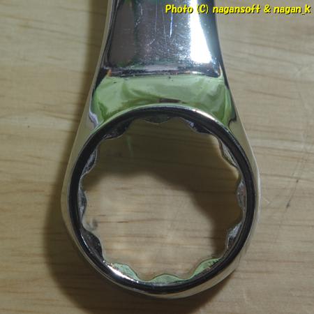 このレンチですが、きちんとしたメーカーの工具って、メガネ部分の外枠ってこんなに細いのね。と、超関心しました。