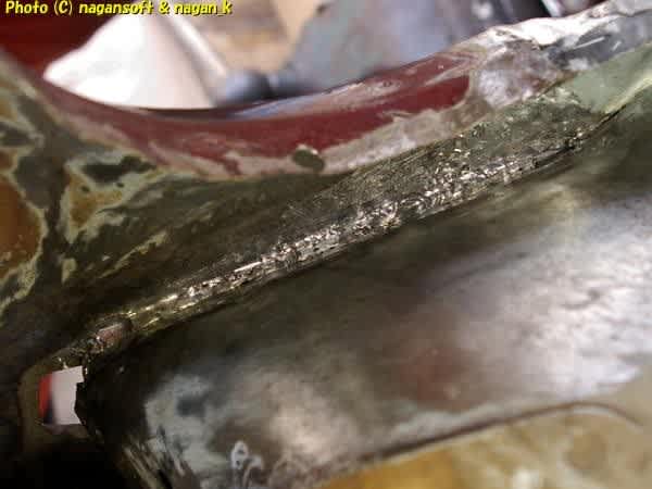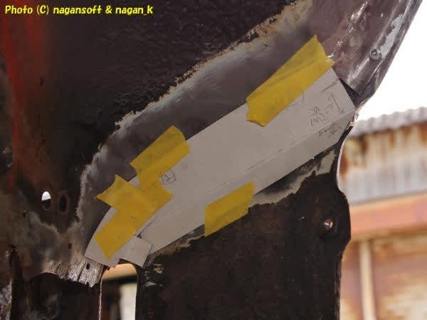 フェンダー内側は、最終的にこってりとチップコートが塗られるので少々の段差はふさがるのですが….