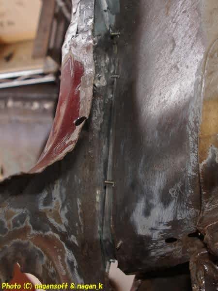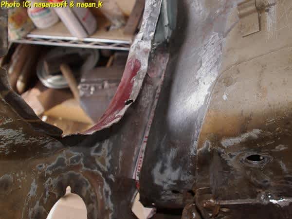 2021年3月7日のブログ記事:R-2君、右前フェンダーエプロンとフロントパネルの接続部分を切除
