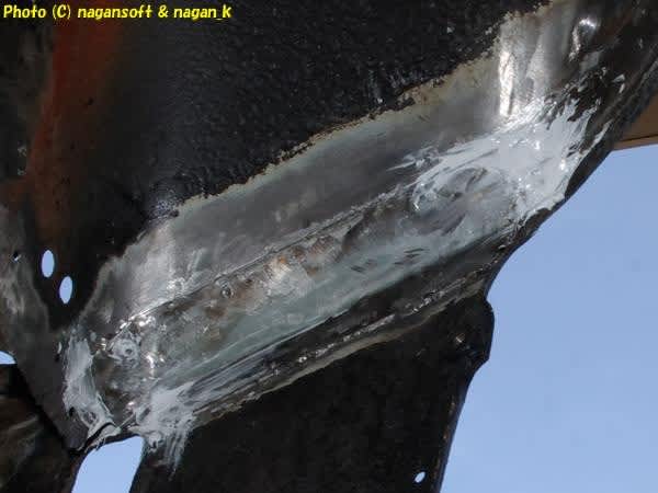 念には念を入れときましょう。鉄板合わせ部分の段差盛り上がりが大きいところにシール(シーカフレックス)をなすくりました。