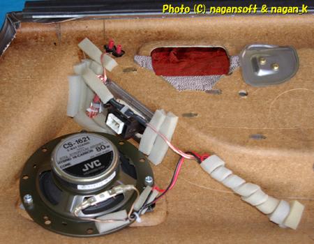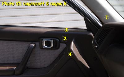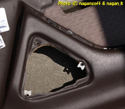 No.4 あとは、ドアスピーカーネット三角の頂点辺り。ここもいいなーと思っていたのだけど、助手席でダッシュボックスの開閉で接触するのでダメ。