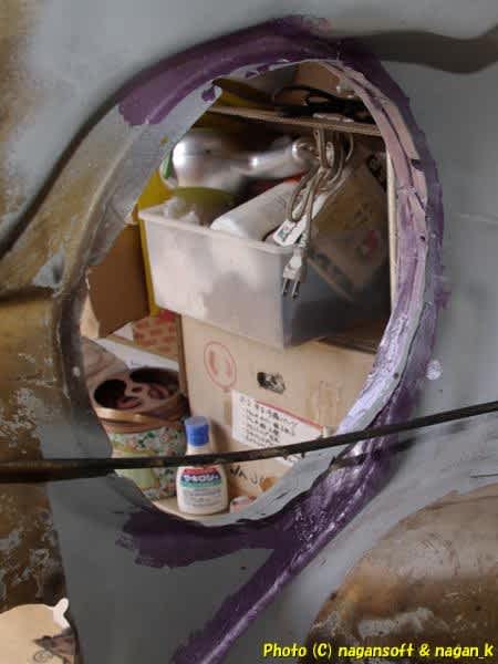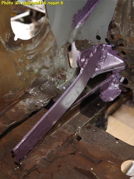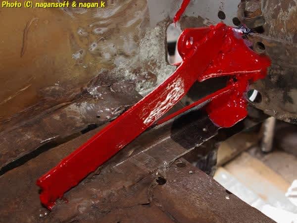 R-2君、トランク床右端パネルボンド施工前の錆取り4日目