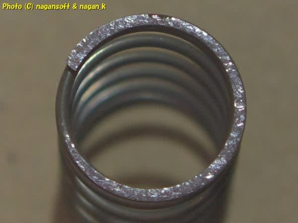 新品部品と比べると、あきらかにスプリングがヘタレているのがわかります。