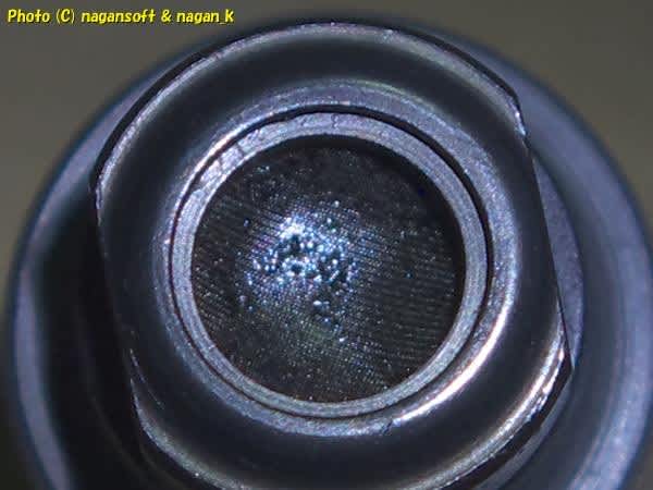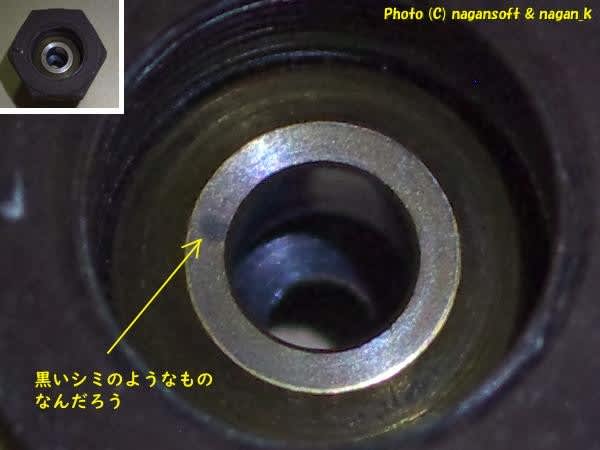 内部です。ホース先端が当たる部分ですが、黒いシミのようなものがあり。