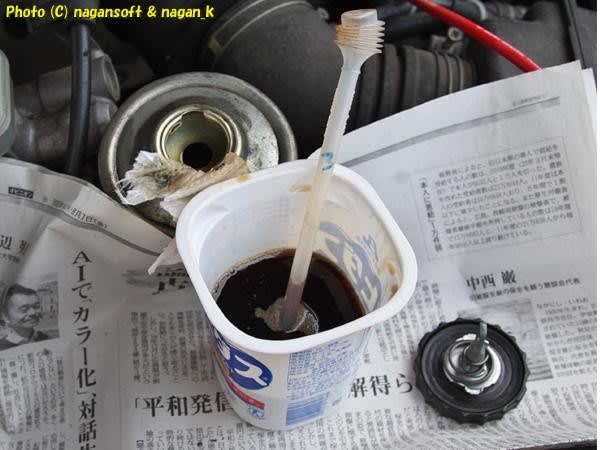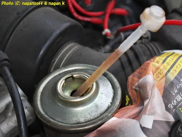 いうまでもないよね。こんな黒いオイルがパワステの駆動力だったってことです。