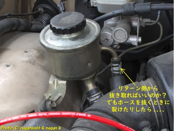 だってパワステポンプをいきなり交換するなんて、部品代がさー。それに脱着するときにホースにダメージを与えたりしたら部品でないと思うんだー。だからパワステポンプを弄るのはなるだけしない方向で…