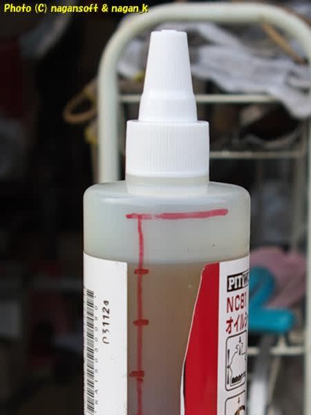 あーっ、もう残り少ないわ。ということで希釈処理は終了にして最終オイル入れです。
