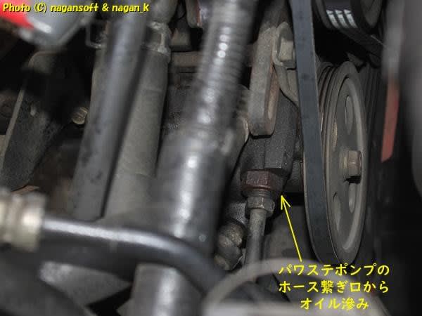 さらに、先月のラジエター交換をしたときにパワステポンプからオイル滲みがあるのも発見しました。