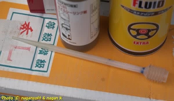 リザーブタンクに新油を入れて、エンジン始動してハンドルを左右にゆっくりと24回して、エンドン止めてリザーブタンクのオイルを抜いて…。というのを3回しました。