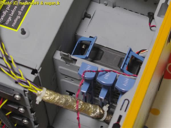 電源下の背面からフロントパネルまで梁があるのよね。このぐらいは筐体として当たり前かなーと思うのだけど、最近のパソコン筐体は真ん中に梁なんて設計されてないしねー。