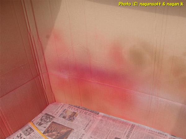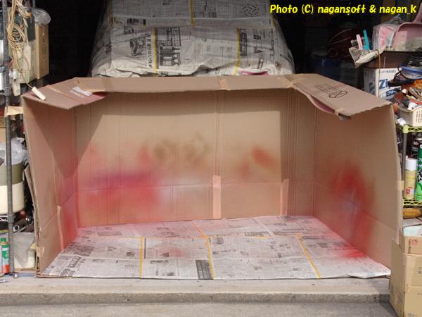 下手くそ塗装の証です。ダンボールにはかなりの塗装ミストが付着しています。