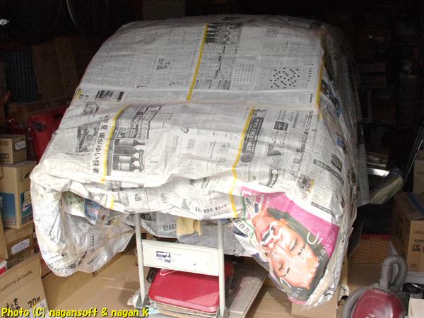 R-2君、久しぶりだねー。と、新聞マスキングの上からナデナデする私です。