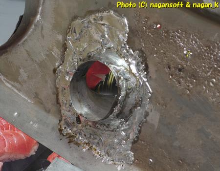 つまり、1カ所の溶接はしっかりしていて、ベースの薄い鉄板を引っ張ってくるのです。