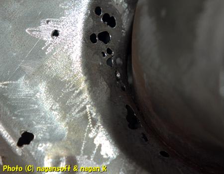 やっぱりハンダを盛るにはサビの酷い方に盛り付けるべきだろうと思い直して、裏面から責めることにしました。