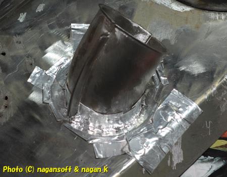 ダクトと土台部分との隙間にもハンダをたんまり流し込みました。