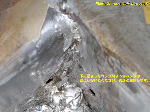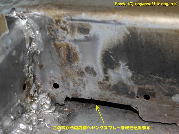 梁接続部分のハンダ処置ができましたので、梁内部にジンクスプレーを吹き込みます。
