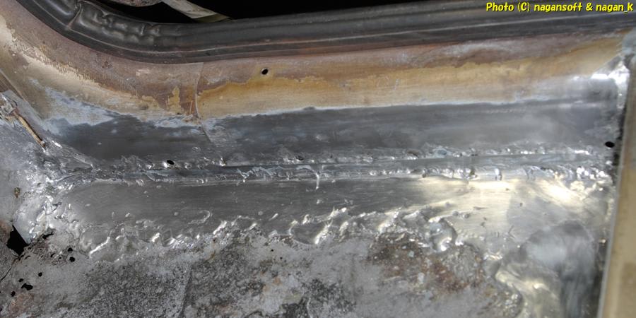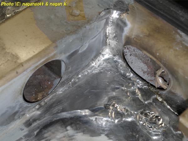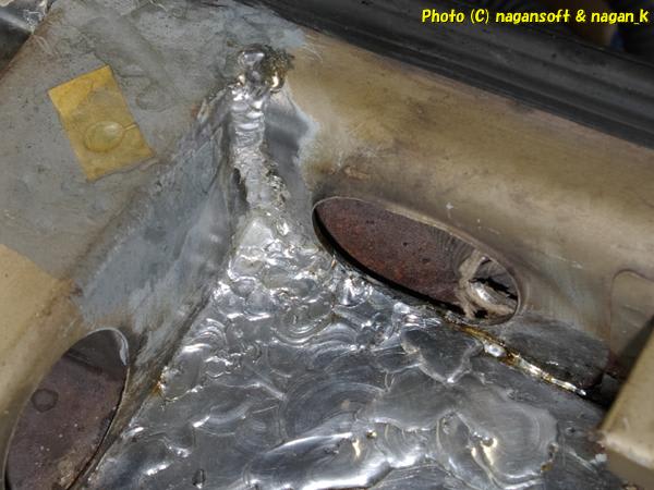これで、運転席側サイドシル、右サイドシルと室内梁接続部分、の修正が完了です。