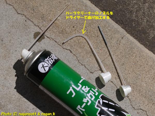 ジンクコートのノズルを引っ張れば簡単に抜けます。そこに、パーツクリーナーの噴射ノズルを差し込むだけです。