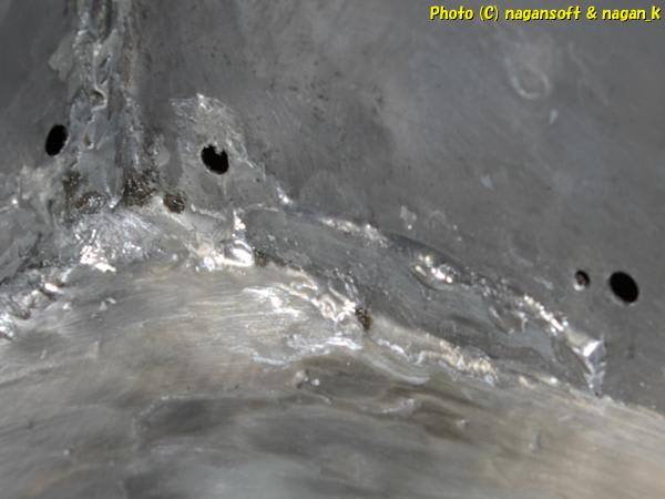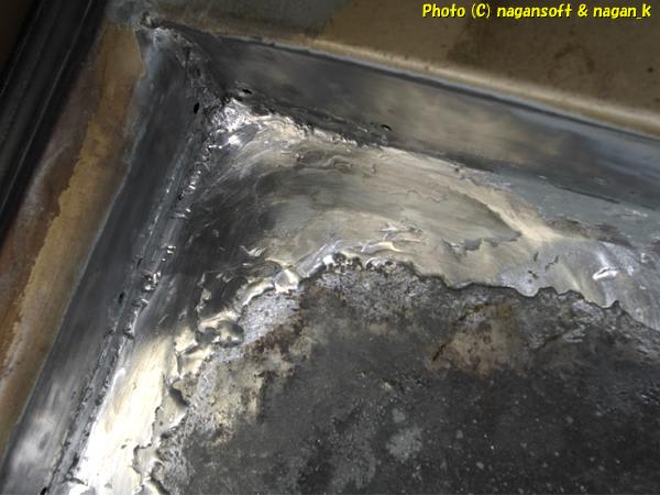 これで、右サイドシルと、梁の接続部分の修正はできたので、余剰ハンダを簡単に研磨しました。
