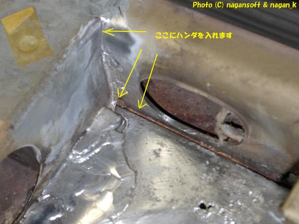 昨日からの続きで、右サイドシルとフロア梁の接続部分を処置していきます。