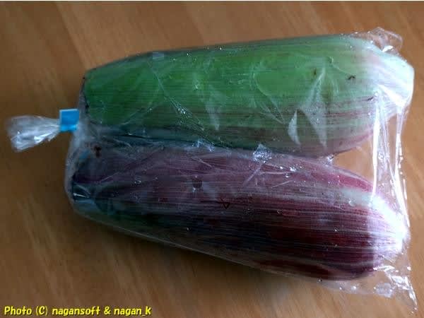 持ち帰ったら、食材を冷蔵庫に入れるべく、そそくさと嫁が取り出す。トウモロコシを見て….