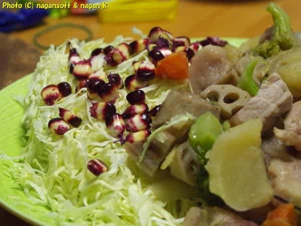 生でかじったら甘くて美味かったのでちょっとだけサラダにまぶしてみました。ってのも登場です。