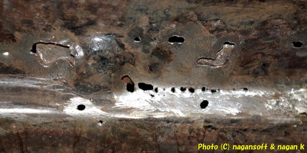 リューターで小さいサビ穴をほじると、サクサクと穴が大きくなるのはいうまでもありません。