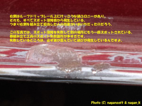 右のルーフドリップレールはスポット溶接が下手くそなんです。
