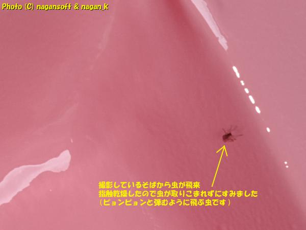 指触乾燥に至っていたので、この羽虫はピンクの大地に取り込まれずに、ごきげんでピョンピョンと飛び回っているのです。