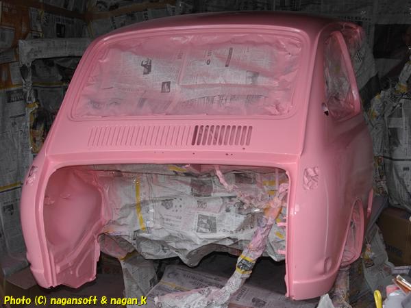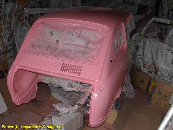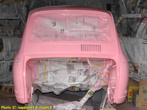 ちなみに、この車体半分とエンジンルームの手前側だけを塗るのに塗料を1.2Kg使いました。シンナーもほぼ同量使ってます。
