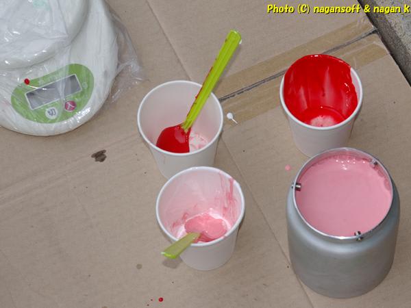 xx鉄工所レッドと白色(531ホワイト)を50:50でチャンポンして色を作りました。