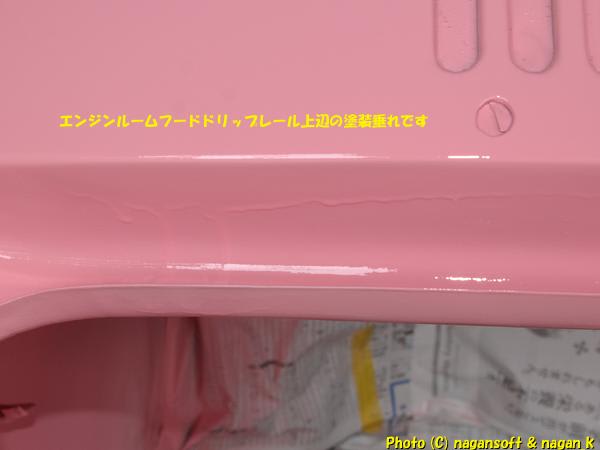 カールしている内側ですが、しっかり色を乗せようと頑張ってみたら塗装垂れしました。さらにカールの内側で数の子天井になってしまったところもあります。