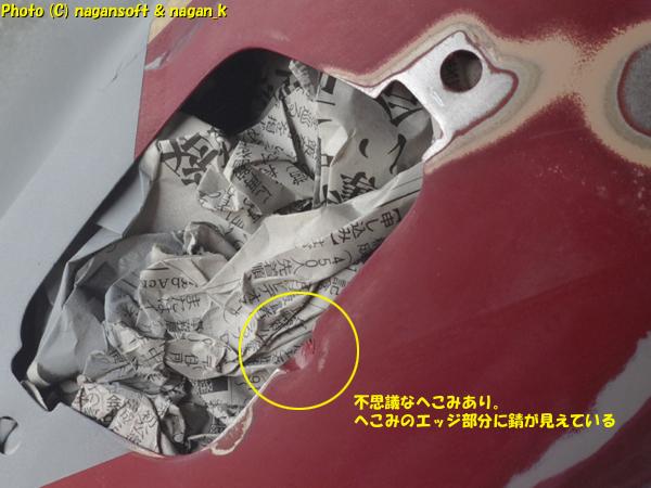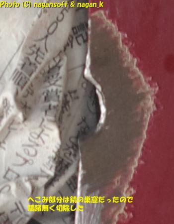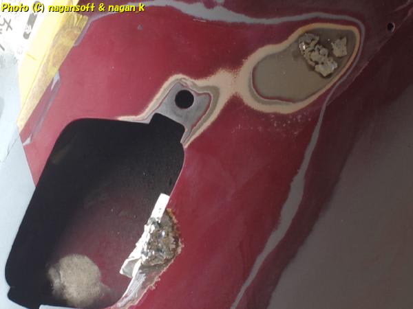 塗料が乗っているのですが、よく確認すると、この凹み部分は錆の巣窟でした。