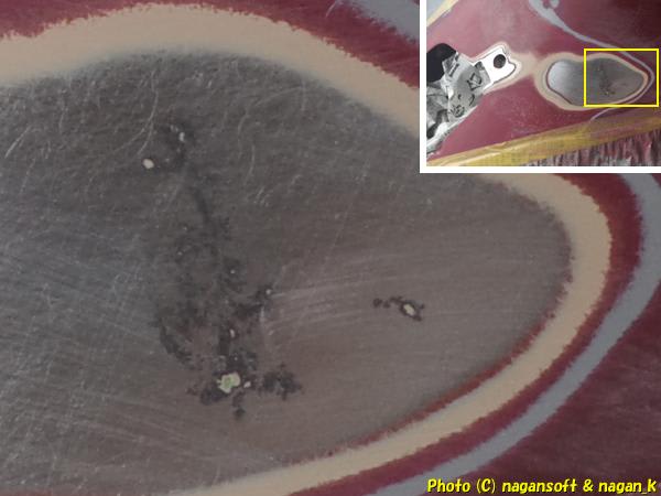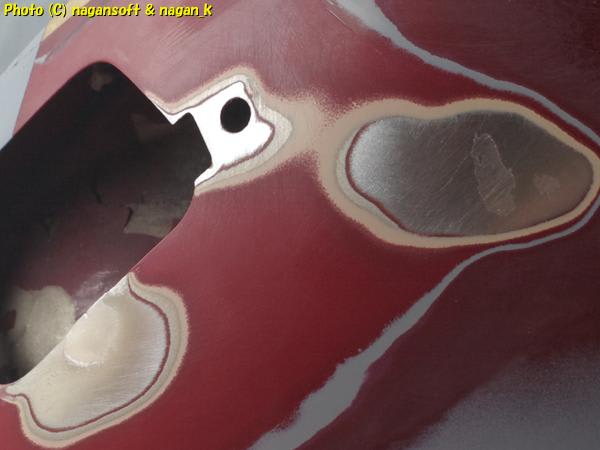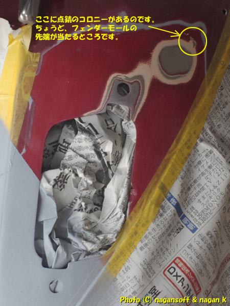 点錆なのですが、こういうのは案外塗装の下に広がっていたりするので、どこまで錆びているのかなーって周辺を研磨します。