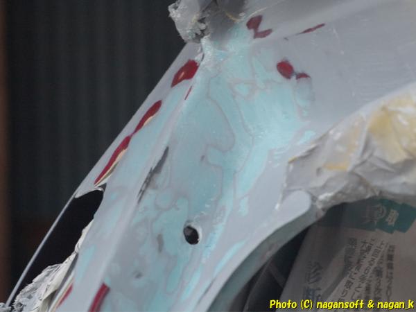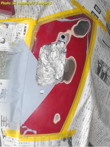 テールランプホール縁は切りっぱなしでもいいかな?と、思ったのですが、たったこれだけの切除なのに、周辺を叩くと共鳴することが発覚。
