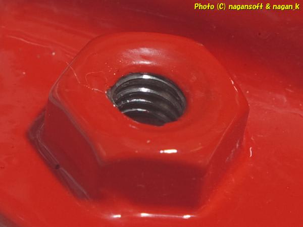 私のような素人が塗装すると、ボルト通し穴、ボルト受けナット、といった穴の中に塗料が入ります。